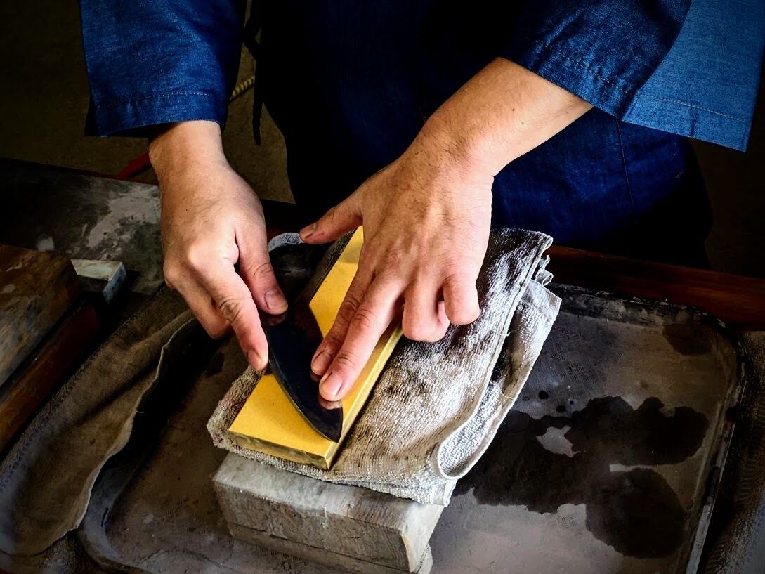 工房で丁寧に研ぎ直します。移動研ぎ直し店で直ぐにお渡しと、出来上がりの差は歴然です。